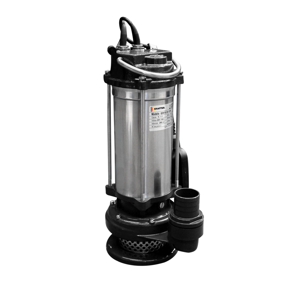 Bomba de achique sumergible Krafter de 2 HP. Ideal para inundaciones, sacar agua de piscinas o tanques. Bomba con triturador que hace que no se dañe su impulsor, viene con 10 metros de cable y con flotador que la protegerá cuando baje el nivel de agua.