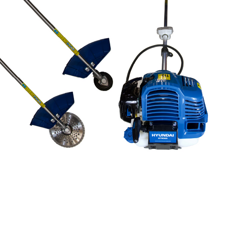 Desbrozadora de Eje Recto Hyundai 82HYTBC520. Incluye: 1 Lente, 1 guante, 1 visera. Enfriado por aire, de 2 tiempos y es de tipo Monocilíndrico. Posee una potencia de 1.9 HP, cilindrada 52cc, su tipo de eje es recto, es de sistema de arranque manual, ofrece una capacidad de estanque de 1.2 L y es de combustible de mezcla (gasolina y aceite en proporción 30:1).